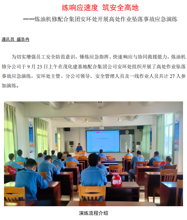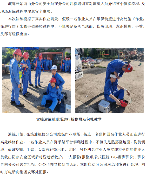 煉油機修配合集團安環(huán)處開展高處作業(yè)墜落事故應急演練